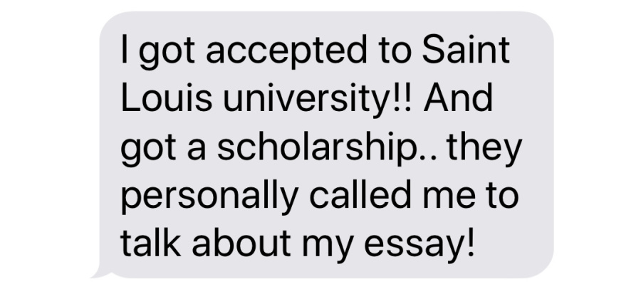 "Your help with my admissions essay made all the difference. Brainstorming and making an outline really helped. Thank you!"